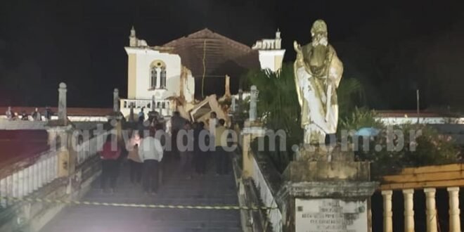 Por meio de nota, o padre Rogério Cabral, pároco na Igreja Matriz de São Sebastião de Varre-Sai, se manifestou sobre o desabamento do tempo, na noite desta quinta-feira (13). O sacerdote, que se encontra em viagem, lamentou o fato, mas demostrou já temer por tral desfecho.