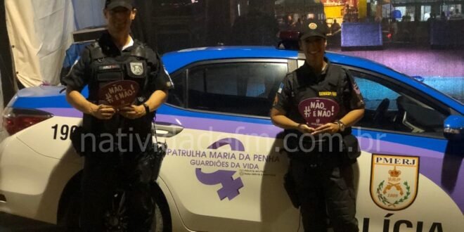 A guarnição do projeto “Patrulha Maria da Penha, Guardiões da Vida”, está realizando ação preventiva e educativa no Centro de Natividade, onde estão desfilando os blocos de carnaval, além de bandas se apresentando no palco. Os militares ligados ao 29º BPM, distribuem material gráfico, alertando que o assédio sexual é crime, com pena que pode chegar até cinco anos de reclusão.
