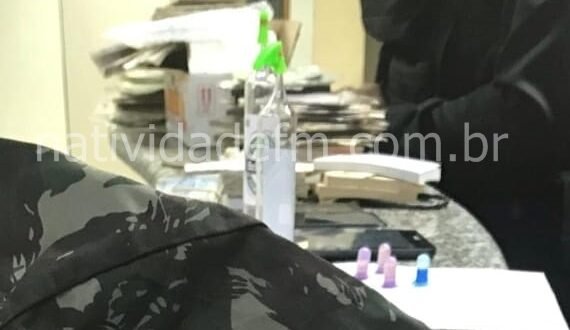 Militares do 36º BPM vasculharam o local, onde ao final da operação, apreenderam quatro pinos de cocaína e outros 14 vazios, dois frascos de lança-perfume, centenas de CDs/DVDs, farda camuflada do Exército, maços de cigarros de venda proibida no país, tablet, celulares, trituradores de fumo, material do jogo do bicho, além de R$ 2.740 em dinheiro.