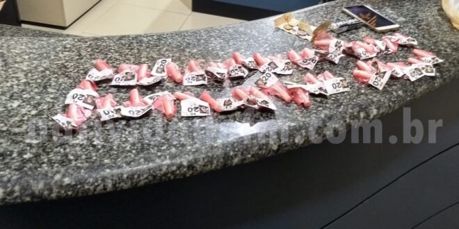 Um homem foi preso na noite desta quarta-feira (11), sob a acusação de tráfico de drogas, em Natividade. De acordo com as primeiras informações, Aquino Mariano Neto, de 30 anos, teria sido interceptado por militares do 29º BPM lotados no DPO de Ourânia/subtenente Andrade/sargento Lázaro –  frente a Praça Ferreira Rabello, Centro – que verificavam denúncia anônima, de que ele, transportava drogas para o distrito.  Com o envolvido, que viajava no interior de um ônibus da empresa Brasil, os agentes encontraram 39 pinos de cocaína, com preço de venda de R$ 20 e inscrição de uma facção criminosa. A ocorrência, está sendo lavrada na 140ª DP, onde o suspeito deve ser autuado em flagrante e após pernoitar na distrital, transferido ao sistema prisional.