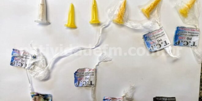 Militares do 29º BPM apreenderam quatro pinos de cocaína e outros dois vazios, durante ação de rotina, no bairro Santo Antônio (Grenville), Porciúncula. A equipe do Patrulhamento Tático Móvel (PATAMO – sargentos Prevato/Eduardo e cabos França/Marquioti), abordaram E.M.T., de 38 anos, que ao ser confrontada, seguiu com as agentes que já a monitoravam, até a residência na Rua Geraldo da Conceição, onde estava parte da droga.