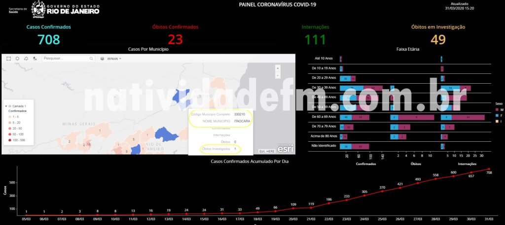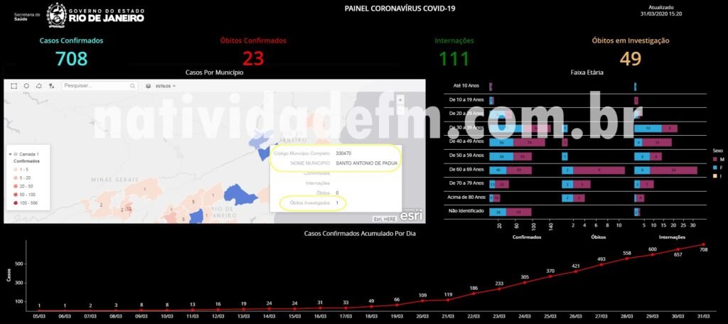 Os óbitos sob avaliação, são de pacientes das cidades de Itaocara e Santo Antônio de Pádua, que em vida, não chegaram a atestar positivo. Os dados constam de boletim atualizado pela pasta, que até às 15:20h, já havia relatado 708 casos positivos em todo o território fluminense, com 23 óbitos confirmados, além de outros 49 sendo averiguados.