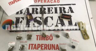Agentes da Operação Barreira Fiscal do posto de Timbó, no Cruzamento de Bom Jesus, apreenderam nesta quinta-feira (12), 1,5kg de maconha e três pinos de cocaína, com um passageiro de ônibus que trafegava pela RJ 186. A droga foi encontrada no interior do veículo que iria para Bom Jesus de Itabapoana (RJ) e o suspeito – homem que não teve …