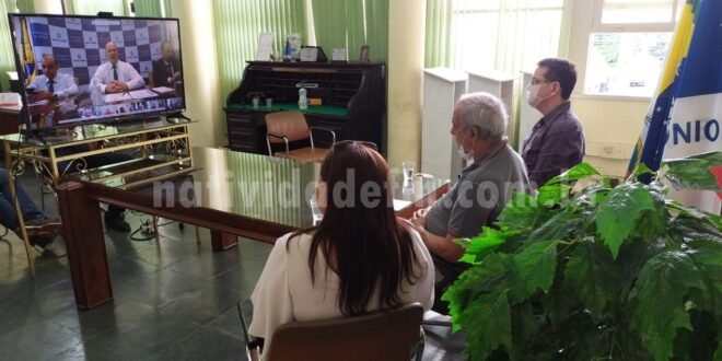 Josias Quintal (centro), durante videoconferência com o governador