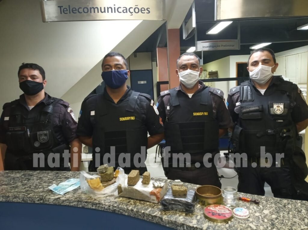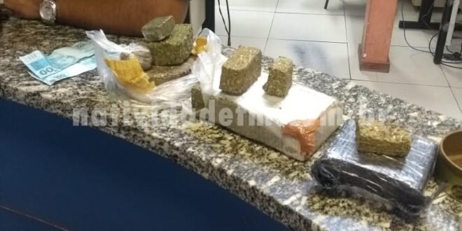 Um suspeito de tráfico de drogas, que ainda não teve a identidade confirmada, foi preso no final da noite desta quarta-feira (29), na área central de Porciúncula. Militares do 29º BPM – setores Tango e Operação Divisa – passaram a verificar denúncia anônima e abordaram o elemento em um veículo, na Rua Deputado Luiz Fernando Linhares, encontrando no interior deste, quatro pequenos tabletes da droga. A maior parte do entorpecente, totalizando 1.587 gramas, contudo, estava na residência do envolvido, autuado em flagrante na 139ª DP, onde aguarda transferência ao sistema prisional.