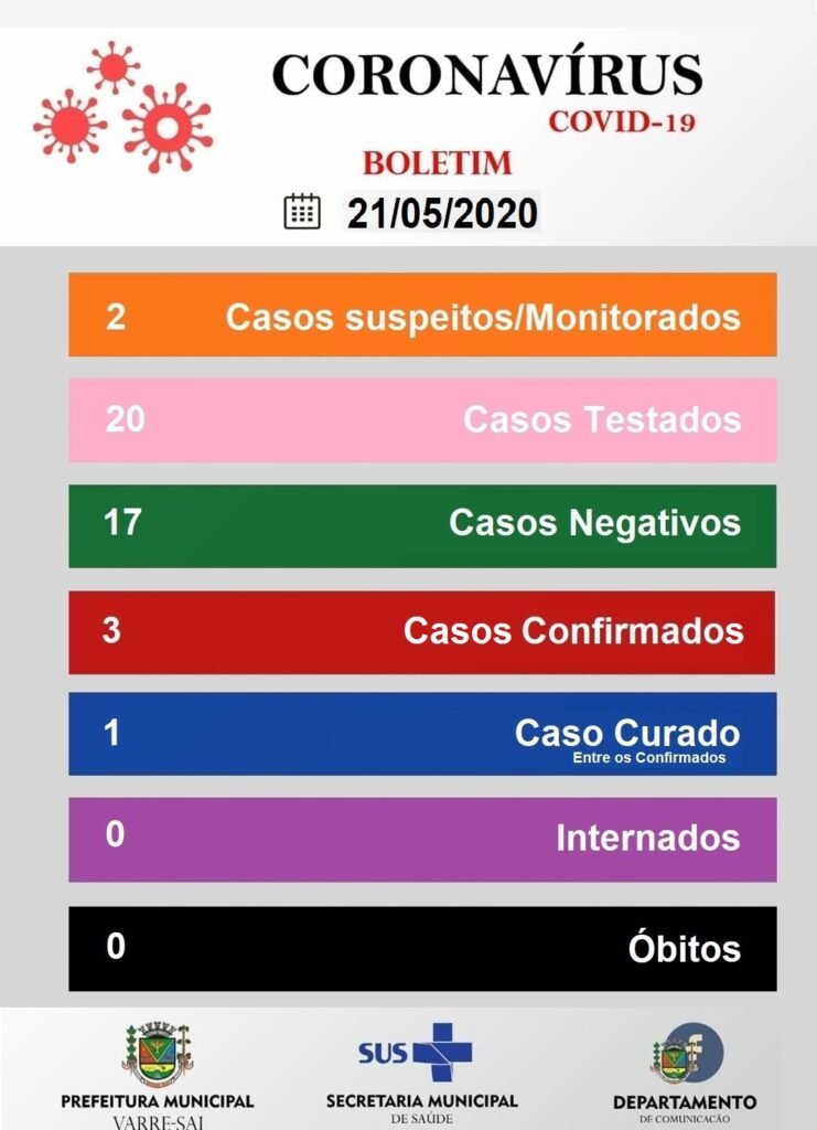 O prefeito de Varre-Sai, o médico Silveste Gorini, em pronunciamento na tarde desta quinta-feira (21), informou que foram detectados dois novos casos da covid-19 no município, que passa a ter agora três casos, o menor número de infectados do Noroeste Fluminense.