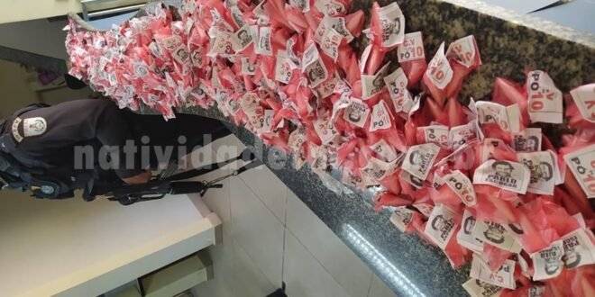 Ação deflagrada no final da manhã desta quarta-feira (27), resultou na prisão de um suspeito e apreensão de 1.200 pinos de cocaína em Bom Jesus do Itabapoana. Alertados sobre a chegada de uma carga de drogas vinda do Rio de Janeiro, militares do 29º BPM se deslocaram até a estrada da Soledade, onde surpreenderam Lucas Martins de Oliveira, o “Barriga” de 22 anos, tentando esconder o entorpecentes junto da vegetação. O envolvido ainda tentou fugir da abordagem, mas acabou contido, apresentado ao plantão da 144ª DP, autuado em flagrante e enviado ao sistema prisional.