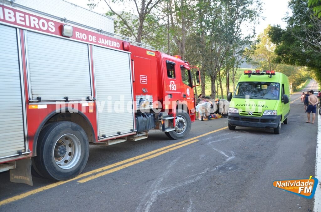 Um casal, identificado como Daniel Machado e Lorrane Alcântara, ficou ferido após sofrerem acidente de trânsito no final da tarde deste domingo (14), na RJ 214, na zona rural de Natividade.