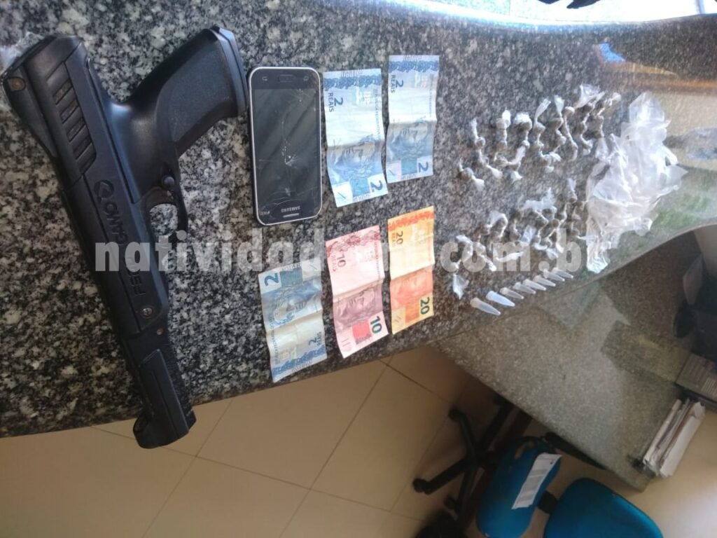 A equipe realizou buscas na residência do suspeito identificado como Fabrício da Silva Soares, o “Negueba”, de 23 anos, onde apreenderam uma pistola de ar comprimido, 48 buchas de maconha, oito pinos vazios, material para endolação, celular e R$ 36. O acusado foi apresentado ao plantão da área da 143ª DP/Itaperuna, autuado em flagrante e aguarda na distrital a transferência ao sistema prisional.
