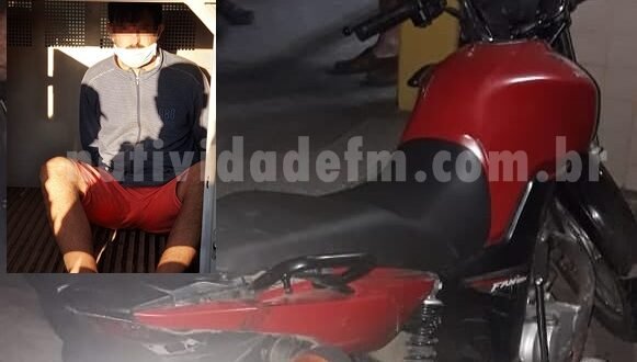 No final da tarde desta segunda-feira (20), militares do 29º BPM prenderam Luiz Gustavo Dias Oliveira, o “Tingu”, de 32 anos, acusado de instantes antes ter furtado a moto Honda CG 125 Fan, ano 2017, de cor vermelha, placa KRY 4934, pertencente a Drogaria Central, que estava estacionada em frente ao estabelecimento, na Rua Assis Ribeiro, no Centro de Itaperuna.