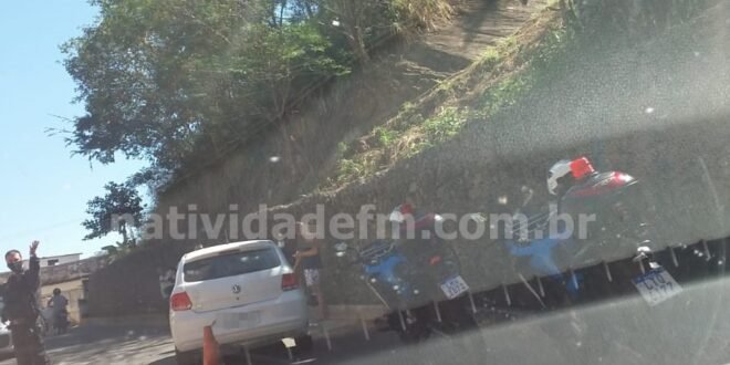Dois veículos – Gol branco e moto de mesma cor – se chocaram por volta das 10:40h desta terça-feira (28), na Rua Idelfonso Dutra, no bairro Sindicato, Natividade, próximo do acesso ao Morro da Formiga. O motociclista, a princípio com leves escoriações, foi removido pela equipe de resgate ao pronto socorro do Hospital Natividade, para avaliação médica. Bombeiros chegaram a ser acionados e militares do setor do moto-patrulha no 29º BPM estão no local.