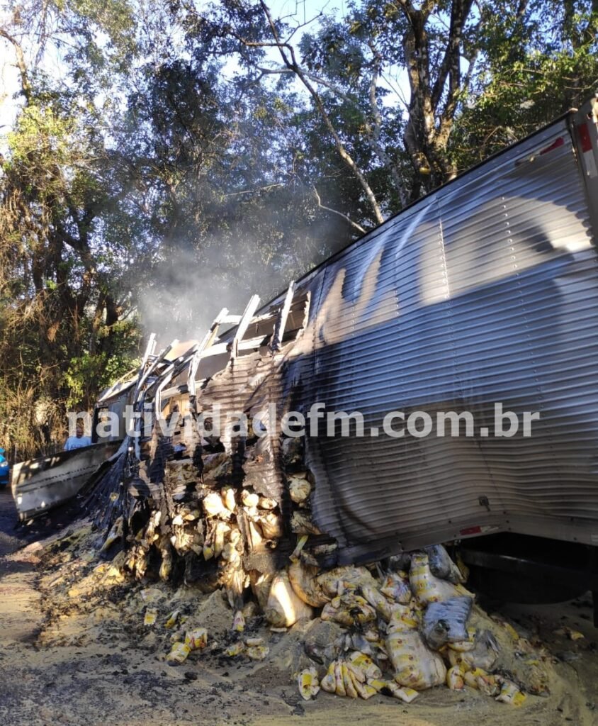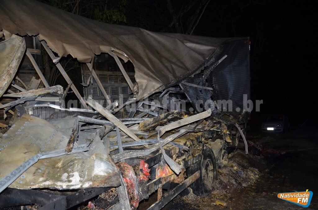De acordo com informações apuradas pelo jornalismo da Rádio Natividade, o utilitário com produtos “Patusco” deixou a sede da empresa para fazer entregas, quando na altura da “Sapucaia”, zona rural de Natividade, o motorista de 43 anos, teria detectado o possível rompimento de uma mangueira, que gerou vazamento de óleo e o consequente incêndio, que rapidamente consumiu todo o veículo e sua carga.