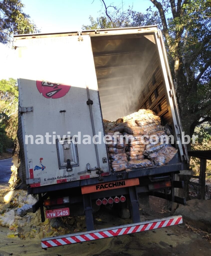 Um caminhão do tipo baú, carregado com toneladas de gêneros alimentícios pegou fogo no início da manhã desta terça-feira (11), no trecho Natividade X Varre-Sai, da RJ 214.