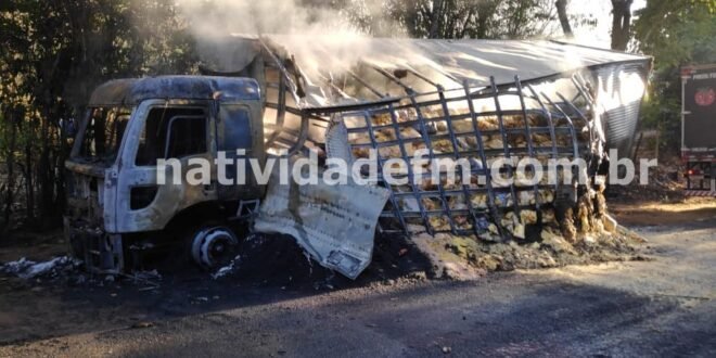 De acordo com informações apuradas pelo jornalismo da Rádio Natividade, o utilitário com produtos “Patusco” deixou a sede da empresa para fazer entregas, quando na altura da “Sapucaia”, zona rural de Natividade, o motorista de 43 anos, teria detectado o possível rompimento de uma mangueira, que gerou vazamento de óleo e o consequente incêndio, que rapidamente consumiu todo o veículo e sua carga.