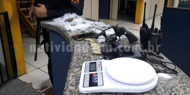 Ação deflagrada no início da noite desta sexta-feira (14), por militares do 29º BPM resultou na prisão de um suspeito, no Loteamento São Manoel, Itaperuna. A equipe já monitorava a residência de Guilherme Barbosa da Silva Pencinato, de 20 anos, na Rua Tenente Antônio José da Silva, quando o abordaram deixando o local com uma mochila nas costas, na qual levava o revolver calibre 38 com cinco munições no tambor e outras 14 avulsas, dois radiocomunicadores, balança de precisão, 55 buchas e um tablete de maconha totalizando 136 gramas, além de telefone celular. Autuado em flagrante na 143ª DP, o envolvido permanece na distrital aguardando transferência ao sistema prisional.