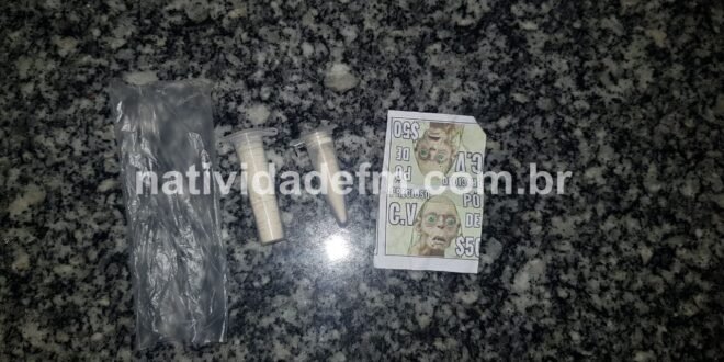 Militares do 29º BPM que realizavam patrulhamento de rotina, apreenderam dois pinos de cocaína na madrugada deste sábado (29), na área central de Natividade. Os agentes se deslocavam pela Rua Luiz Carlos da Silva, quando abordaram um rapaz, com que encontraram a droga, apresentada com ele, ao plantão da 140ª DP. O envolvido prestou depoimento e responderá em liberdade.