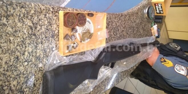 O condutor de veículo Ford/KA de cor prata foi abordado por policiais militares, na manhã desta quinta-feira (03), na Rodovia BR-356, trevo de Raposo, em Itaperuna. Durante buscas no interior do automóvel, em uma caixa, os agentes encontraram cinco buchas de raxixe, duas balas aparentando LSD, dois tabletes de maconha e uma carabina.