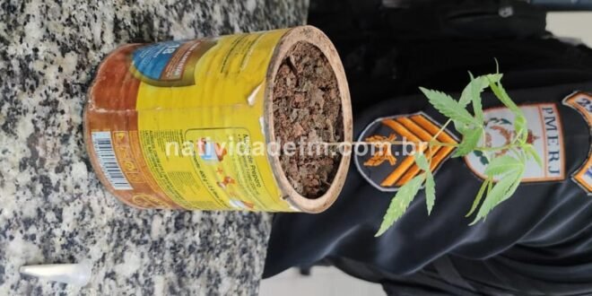Uma pequena muda de maconha, cultivada em uma lata de leite em pó, foi apreendida no início da noite desta sexta-feira (25), no Morro do Cristo Rei, Porciúncula. Militares do Patrulhamento Tático Móvel (PATAMO), do 29º BPM verificavam denúncia e encontraram a planta no interior da residência de M.A., de 21 anos, que não estava. O registro seguiu para a 139ª DP.
