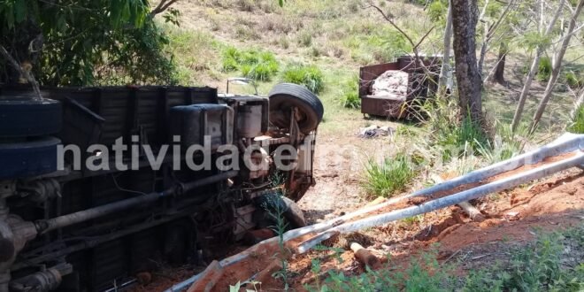 Um caminhão tombou no final da manhã desta terça-feira (29), na RJ 220, próximo dos limites dos municípios de Natividade e Itaperuna. O motorista teria perdido o controle da direção, saído da pista e invadido uma área de pastagem, na altura da “Serraria”. Não há registro de feridos e outro veículo recolheu a carga – de produto não informado – que ficou espalhada.