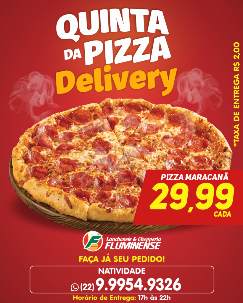 Participe agora da programação da Rádio Natividade e concorra a Pizza Maracanã da Lanchonete, Restaurante e Choperia Fluminense/Natividade. Ligue ou envie mensagem para (ZAP) 3841-2017. Sorteio às 11h. Boa sorte!