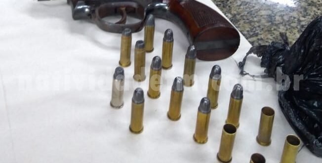 Um revólver calibre 38 com 12 munições intactas e quatro deflagradas foi apreendido na tarde desta quarta-feira (16), durante mandado de busca no interior de uma oficina, na Rua José de Assis Barbosa, no bairro Cehab, Itaperuna.