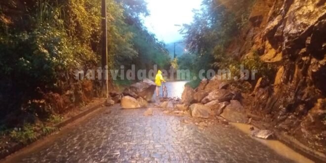 A forte chuva da madrugada desta segunda-feira (04), causou transtornos em Natividade. Já registro de pontos de alagamento em ruas da cidade e queda de galhos e barreiras pelo município. Na Rua Dom Antônio de Castro Mayer, grande pedras se desprenderam do paredão (antigo corte de pedras), no trecho que liga os bairro Liberdade e Parque Lajinha, uma das vias de acesso à cidade a partir da RJ 220. Por volta das 6h o local foi sinalizado pela Defesa Civil Municipal e o transito está fechado nos dois sentidos.