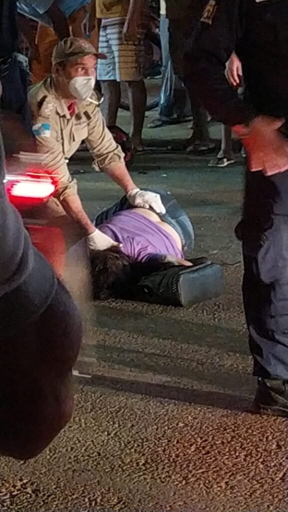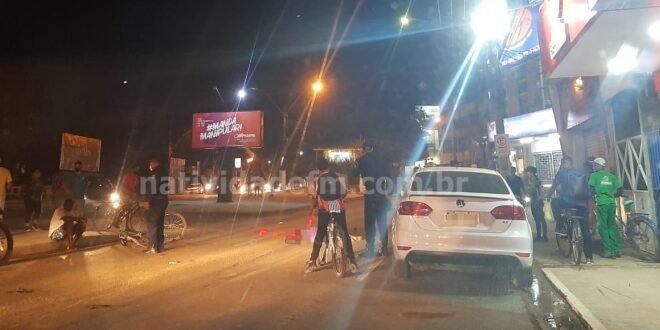 Uma mulher morreu após se envolver em acidente de trânsito na noite desta segunda-feira (04), na Avenida Cardoso Moreira, no Centro de Itaperuna. De acordo com testemunhas, ela estava na garupa da bicicleta conduzida pelo marido, Luiz Cláudio de Oliveira Paula, de 46 anos, que ao tentar mudar de faixa, foi atingido pela moto Honda CG 125 de cor vermelha, pilotada por Natanael Pires Diogo Arruda, de 25, por volta das 19:30h, em frente a “Igreja do Relógio”.