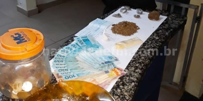 Após receberem informações anônimas, militares do 29º BPM seguiram até a Rua José da Silva Nenén, onde após buscas pelo interior da residência do denunciado, encontraram R$ 3.320 em dinheiro, R$ 1.100 em cheque, além de cerca de 65 gramas de maconha e 33 de cocaína.
