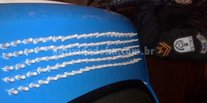Ele teria sido surpreendido pela equipe na companhia de outro elemento, que conseguiu fugir, mantendo contando com um usuário em uma escadaria daquela comunidade. Ao ser alcançado, os agentes encontraram em seu poder, 100 pinos de cocaína. Autuado por crime análogo ao tráfico, o menor responderá em liberdade.