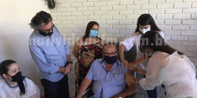 Com mais de cinco décadas de serviços prestados à saúde e ainda em atividade, o médico Heriberto Sanches de Menezes, de 81 anos, foi o primeiro profissional a receber em Natividade na manhã desta quarta-feira (20), a vacina Corovanc no município, que por conta da pouca oferta do imunizante, seguindo protocolos nacionais, deve dar nesta primeira fase, prioridade a servidores que estão na linha de frente e idoso internos do Asilo Recanto do Bem Viver.