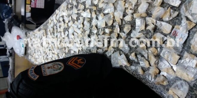 Na noite desta quinta-feira (28), militares do 36º BPM apreenderam 322 papelotes de cocaína, rádio comunicador, material usado para embalar drogas, além de etiquetas com inscrição de uma facção criminosa, escondidos em um terreno baldio, na Rua Bemetildes Maria Linhares, no Morro do Cruzeiro, Miracema. Nenhum suspeito chegou a ser identificado ou detido e o registro, seguiu para a 137ª DP.