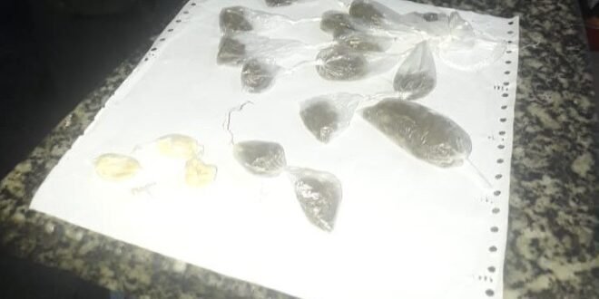 Durante patrulhamento de rotina pela Rua Antenor Gamboa, militares do 29º BPM se depararam com o rapaz, que ao perceber a aproximação da equipe, ainda tentou engolir quatro sacolés de cocaína e dois de maconha, que acabou cuspindo após se engasgar.