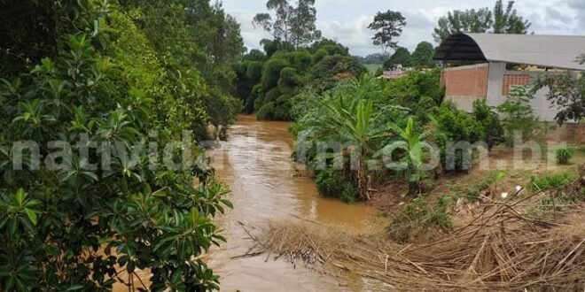 Ao meio dia, o Rio Carangola atingia a marca de 3,20m, enquanto que a cota de atenção é 3,80m; Alerta 4,80 e cota de inundação 5,20 metros.