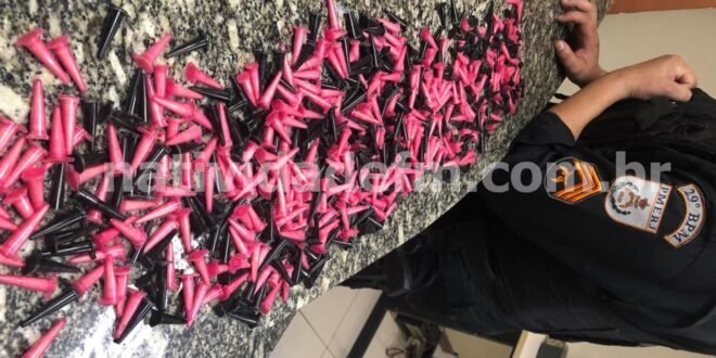 Dois elementos foram presos por tráfico de entorpecentes no final da noite desta terça-feira (23), em pontos distintos de Porciúncula. Militares do 29º BPM que apuravam a denúncia de que a carga de drogas sairia da cidade para abastecer bocas-de-fumo de Natividade, se deslocaram inicialmente até a Rua Queirós Hassim, bairro João Francisco Braz, onde detiveram Jhon Emerson Vicente da Silva, de 19 anos, que seria o responsável pelo transporte de 545 pinos de cocaína (150 gramas), que já estavam em seu poder.