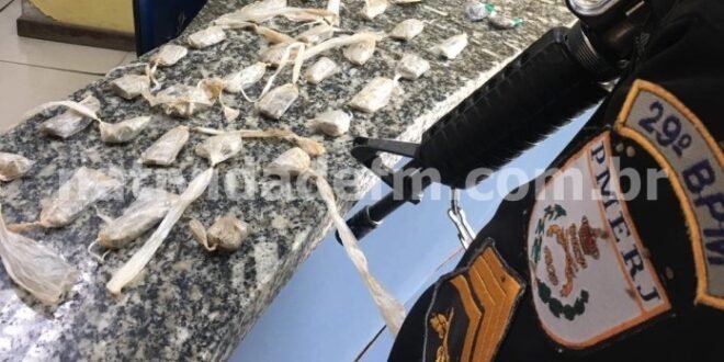 Militares do 29º BPM que verificavam denúncia de tráfico, apreenderam drogas na manhã desta quinta-feira (25), no bairro Santo Antônio Grenville, Porciúncula. Inicialmente duas buchas de maconha foram encontradas junto ao esgoto da residência de um rapaz de 23 anos, na Rua Ivanir Chein Mansur, que ele admitiu ser para uso próprio. Já no terreno ao lado, estavam enterrados mais 32 unidades da mesma substância. O envolvido prestou depoimento na 139ª DP, sendo indiciado e liberado.