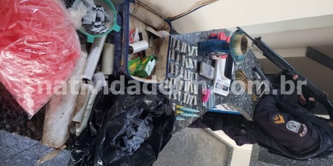 Militares do 36º BPM que verificavam denúncia anônima, seguiram até o ponto indicado – próximo do campo de futebol – onde após buscas pelo interior de um dos imóveis, encontraram a pistola Imbel calibre .380 com numeração suprimida, carregador e oito munições, além de outras 53 munições idênticas, 58 pinos de cocaína, cerca de 500 deles vazios, três balanças de precisão e material para endolação.