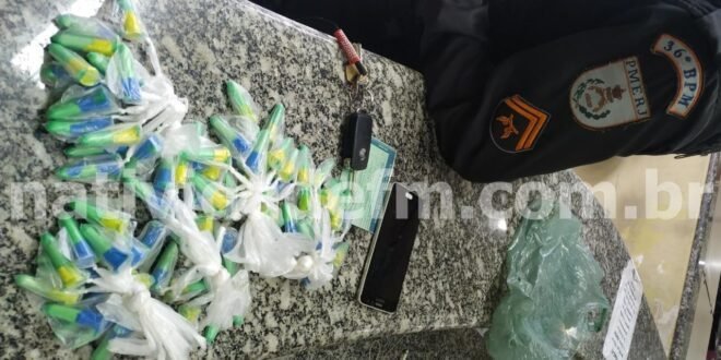 Um homem foi preso na tarde desta quinta-feira (08), no bairro Rodagem, Miracema, transportando 75 pinos de cocaína. Joaquim Teixeira Dias Neto, de 39 anos, foi abordado por militares do 36º BPM na direção do Ford Escort de cor cinza, na Rua Joaquim Rosa da Gama e após buscas pelo interior do veículo, os agentes encontraram a droga sob o bando do motorista. Autuado em flagrante na 137ª DP, o suspeito deve ser transferido ao sistema prisional nas próximas horas.