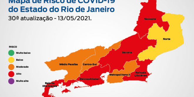 A 30ª edição do Mapa de Risco da Covid-19, divulgada nesta sexta-feira pela Secretaria de Estado de Saúde (SES), mostra que o Estado do Rio de Janeiro está com bandeira laranja (risco moderado de contrair a doença). Apresenta, no entanto, uma melhora do cenário epidemiológico, com a Região Norte saindo da bandeira laranja e passando para a amarela (risco baixo). E uma piora: a Região Litorânea, que estava com bandeira laranja, passa para a vermelha.