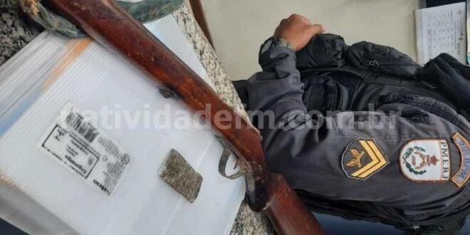 Militares do 29º BPM apreenderam uma arma caseira na noite desta quinta-feira (27), no bairro Botafogo, Laje do Muriaé. A equipe realizava patrulhamento, quando avistou uma jovem de 23 anos, que assustada com a aproximação da viatura se refugiou dentro de casa, onde após buscas, foram localizadas além da espingarda artesanal, um pequeno tablete de maconha. A envolvida informou que o artefato pertencia ao pai, prestou depoimento na 137ª DP/Miracema e posteriormente acabou liberada.