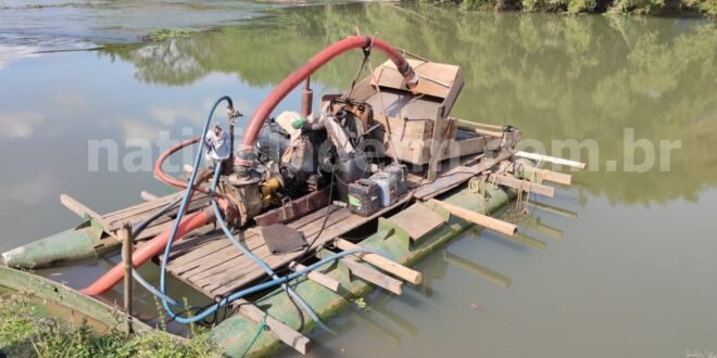 Militares do 29º BPM guiados por denúncia, se deslocaram até a margem do Rio Carangola, onde visualizaram a balsa, quando dois suspeitos que seriam mergulhadores, tentaram fugir para o lado oposto, mas acabaram alcançados pela equipe que os perseguiu a nado. Os envolvidos deverão responder em liberdade junta à Delegacia de Polícia Federal de Campos dos Goytacazes por extração ilegal, enquanto que o material usado para a lavra do outo foi apreendido e passará por perícia.