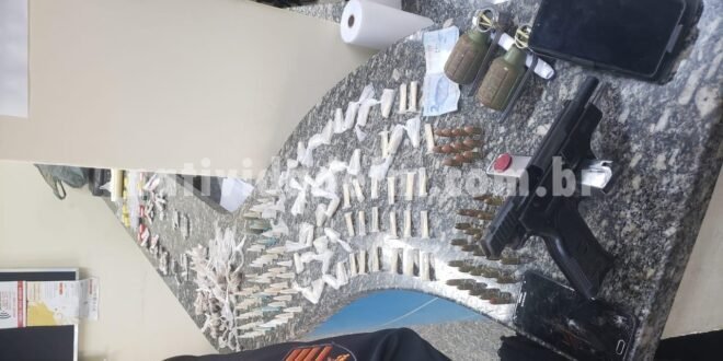 No local, os PMs encontraram uma pistola calibre 9mm com carregador alongado e 38 munições, duas granadas de uso exclusivo de forças armadas, 125 pinos de cocaína, 103 buchas de maconha, celulares, além de material para endolação. O caso está sendo registrado na 136ª DP.