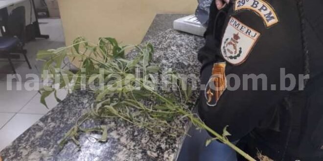Militares do 29º BPM apreenderam uma planta parecida com maconha que estava em processo de secagem, para posterior consumo, no distrito de Purilândia, Porciúncula. Alertados através de denúncia, os agentes se deslocaram até a Rua Geraldino silva, onde após buscas pela residência de M., de 24 anos, encontraram a planta in natura, estendida no varal. O rapaz admitiu que se tratava da cannabis sativa, mas o laudo da perícia resultou negativo para a substância.