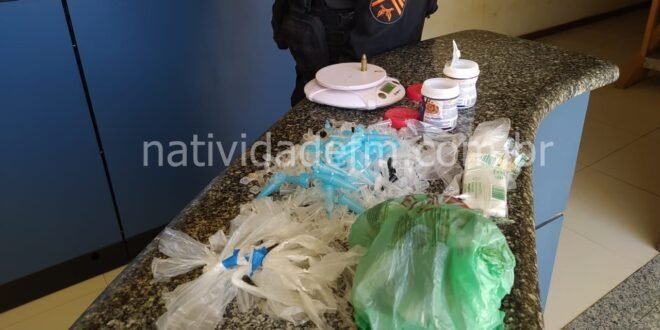Um rapaz de 18 anos, foi detido na manhã desta segunda-feira (09), na zona rural de Natividade com materiais normalmente usados para o tráfico de drogas. Acionados por conta de informação de que o elemento estaria quebrando pertences na casa da avó, na comunidade do Cruzeiro de Cima, militares do 29º BPM seguiram até o local e se depararam com o envolvido alterado e diversos móveis danificados.