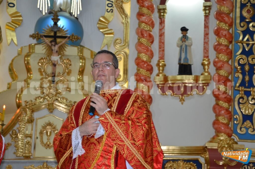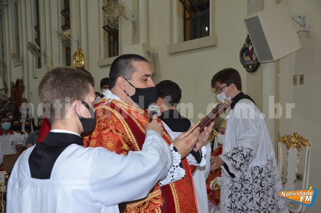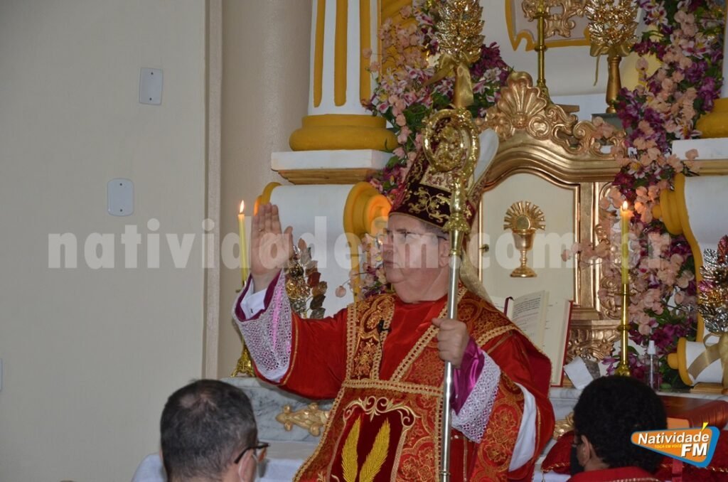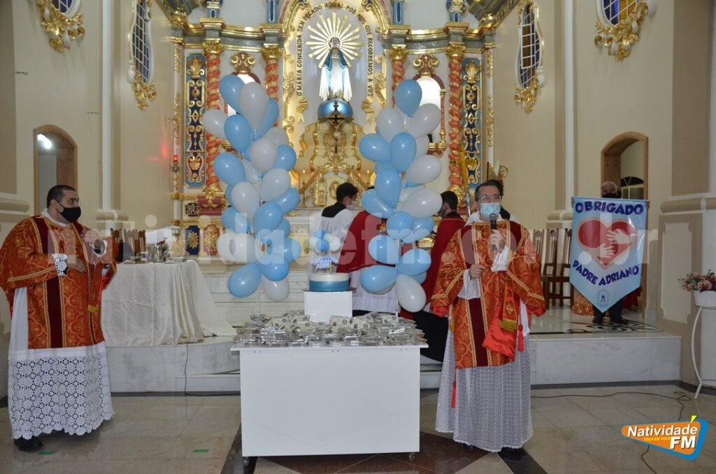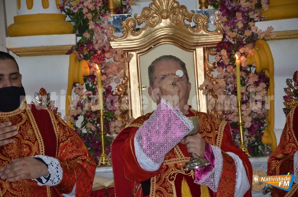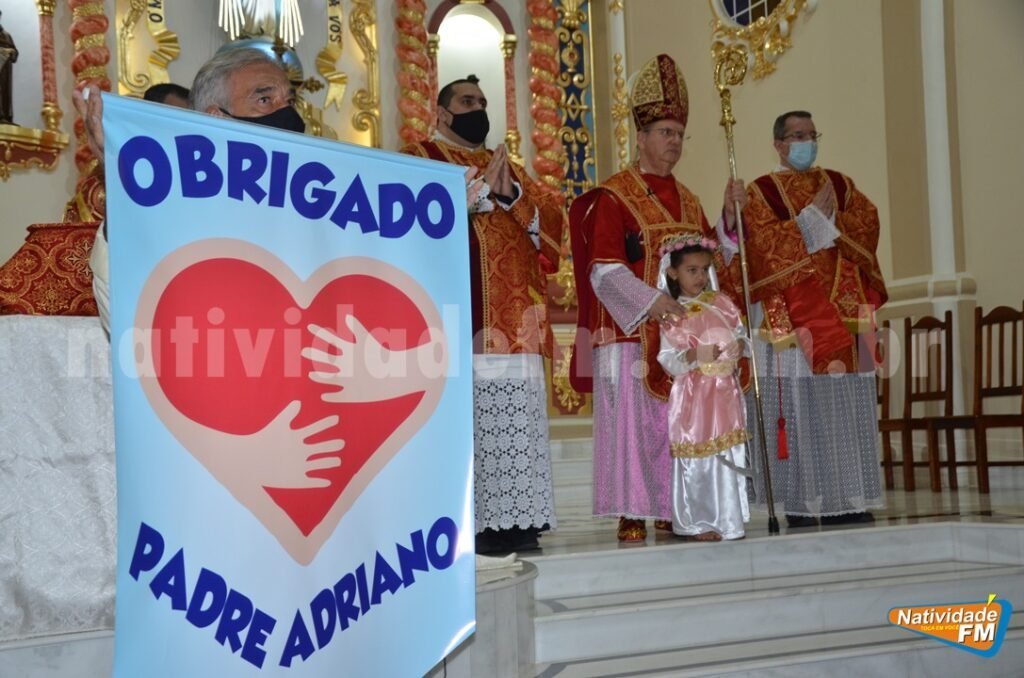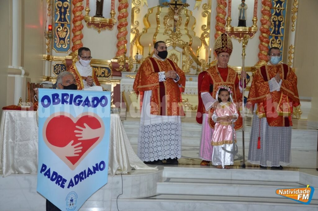 O novo local sagrado que recebeu as relíquias da jovem mártir, além de Santa Luzia e São Brás, protetores dos olhos e garganta, respectivamente, foi ungido pelo bispo D. Fernando Rifan, que na sequencia, oficiou a Santa Missa Solene, concelebrada pelos padres Adriano Botura, aniversariante do dia e Marco Antônio Assunção, que o sucederá a partir deste final de semana. Pelo menos outros seis sacerdotes, também estiveram presentes e ao final, emocionado, Pe. Adriano, transferido recentemente para a cidade de São Fidélis, recebeu homenagens dos paroquianos, com direito a bolo e “parabéns pra você”.