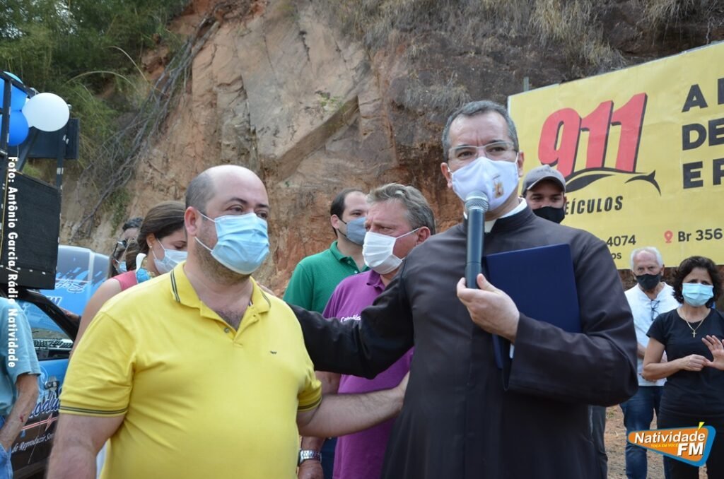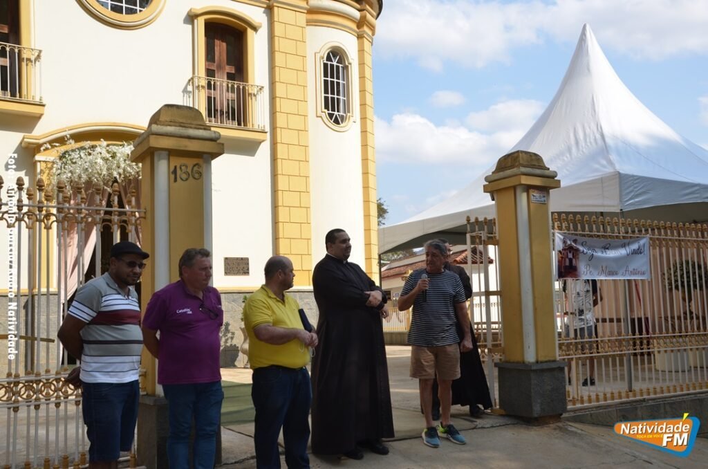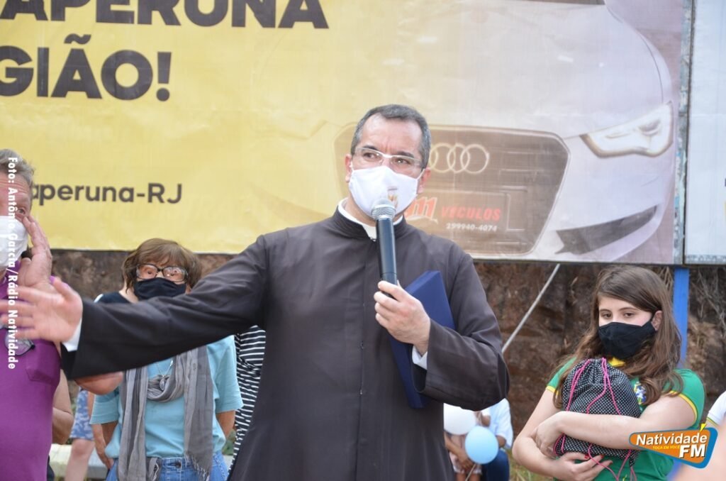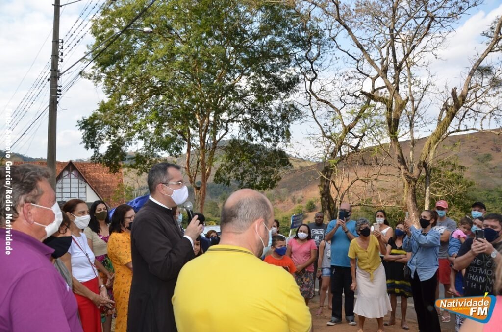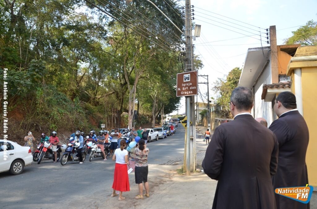 Antes, o comboio passou em frente a Igreja de Nossa Senhora das Graças, onde o padre Marco Antônio Assunção, recebeu as boas-vindas e concedeu sua primeira benção como novo pároco.