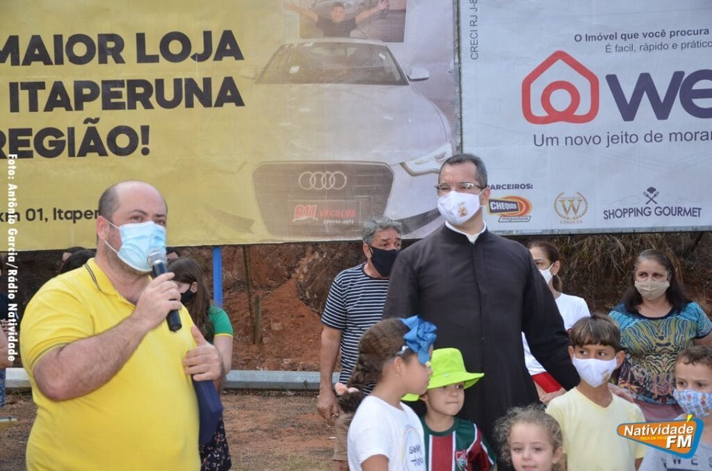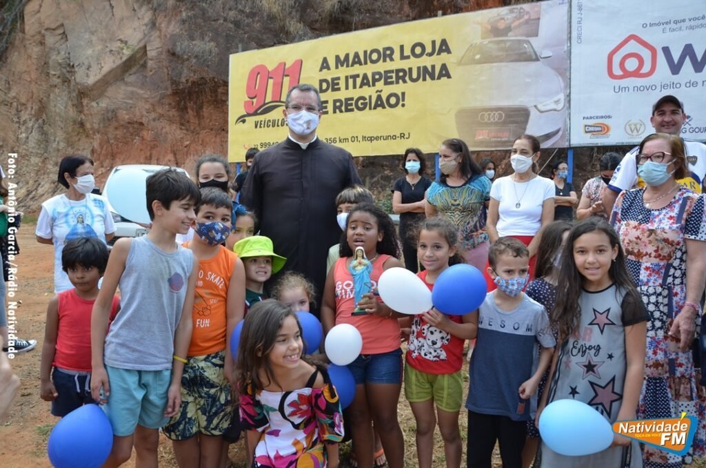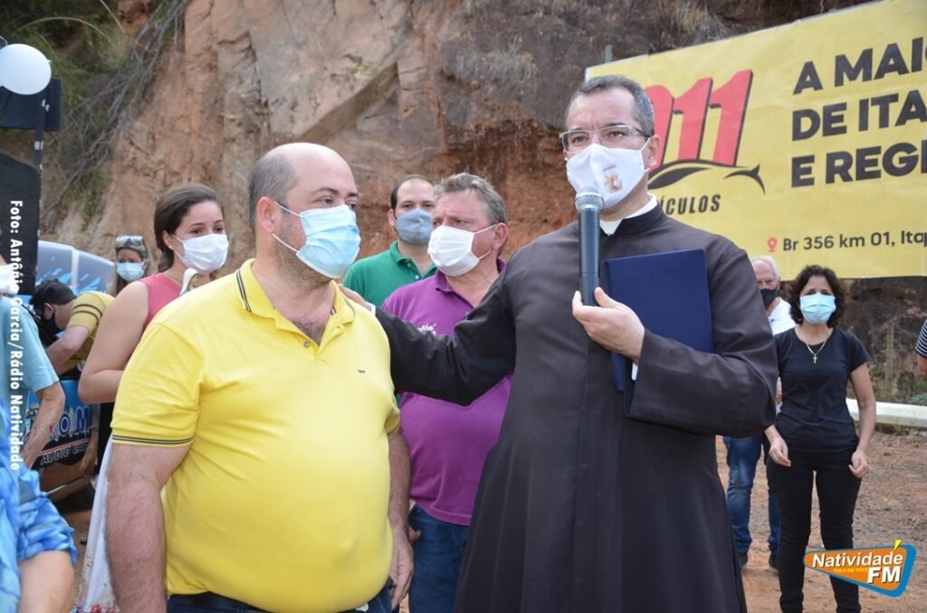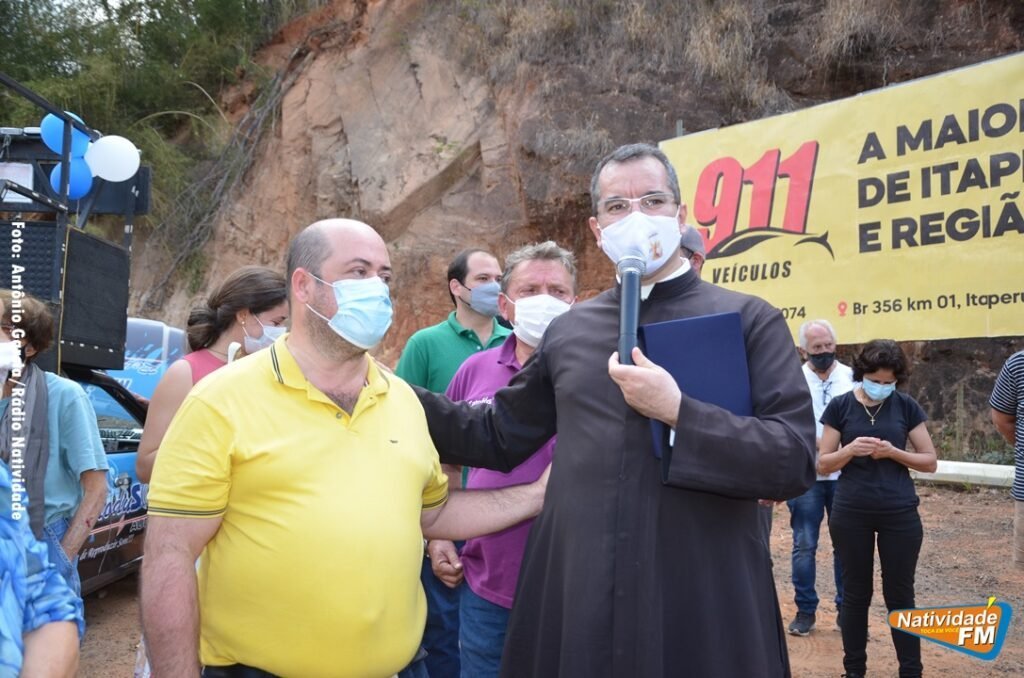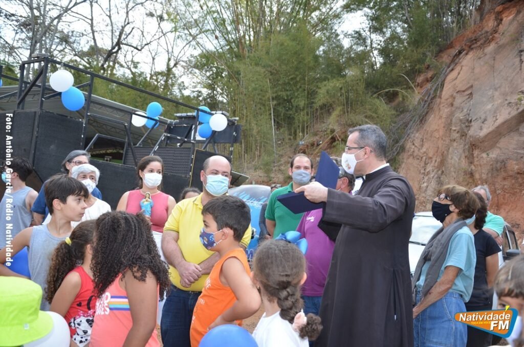 Antes, o comboio passou em frente a Igreja de Nossa Senhora das Graças, onde o padre Marco Antônio Assunção, recebeu as boas-vindas e concedeu sua primeira benção como novo pároco.