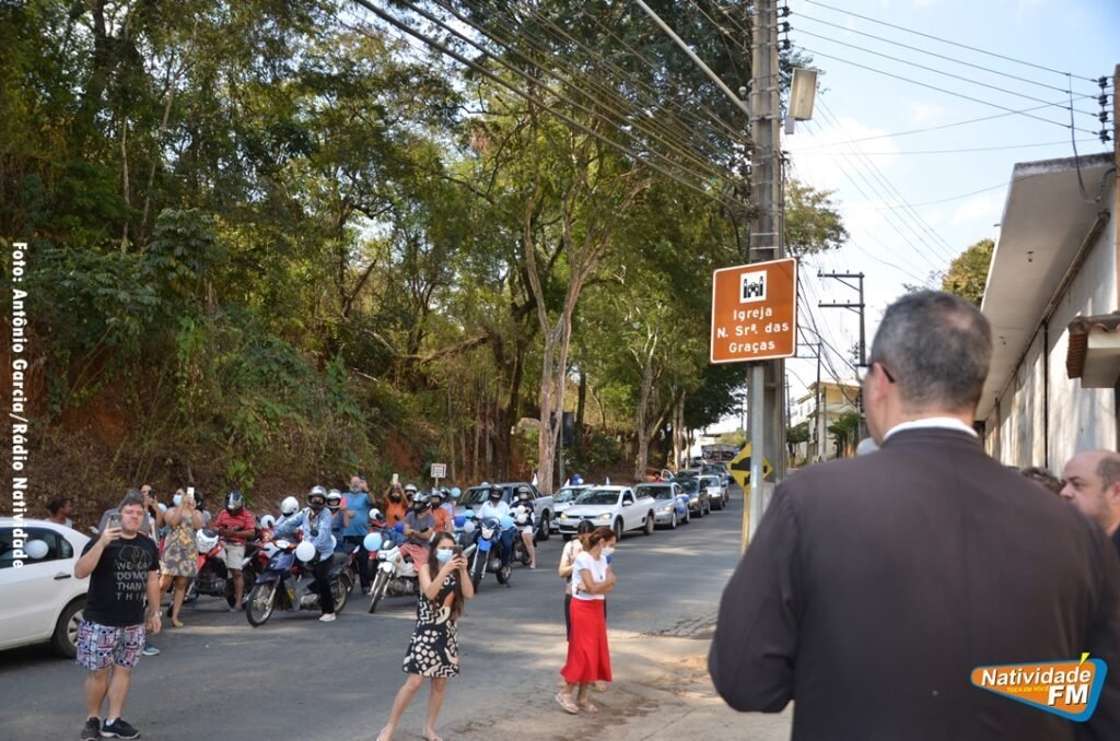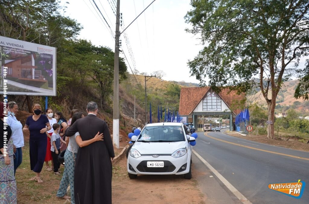 Com o sacerdote à frente grande números de fieis e amigos, o seguiram em carreata/motociata por diversas ruas  – onde moradores faziam questão de acenar – até pórtico da cidade, onde ele foi homenageado, entre lágrimas de muitos presentes, que receberam sua benção e expressaram palavras de gratidão ao padre, que com seu jeito simples, calmo e sempre solícito, conquistou os corações dos natividadenses nestes cerca de um ano e seis meses que esteve na comunidade.