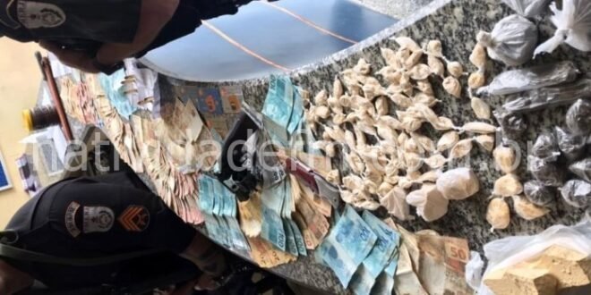 Com ele, os agentes encontraram um revólver com cinco munições cal. 38 intactas; facão; anotações do tráfico;74 buchas de maconha; seis tabletes pequenos de maconha; duas mariolas de maconha; 101 buchas de cocaína; três tabletes de pasta base; uma pedra de pasta base; quatro buchas de pasta base; canivete; R$ 9.966,00 em espécie; cartões e extratos bancários e vários materiais utilizados para endolação. Autuado em flagrante na 148ª DP, ele já seguiu para o sistema prisional.