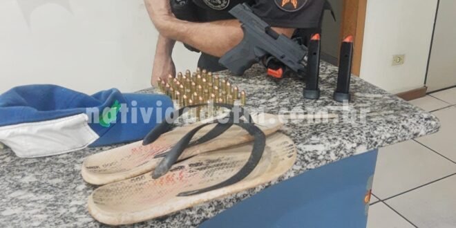 Uma pistola calibre .380 com numeração raspada, três carregadores e 40 munições, cigarro de maconha, além boné e par de chinelos, foram apreendidos na manhã desta terça-feira (19), na comunidade do Morro do Demétrio, Miracema.