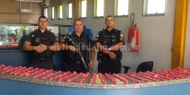 Militares do 29º BPM apreenderam na tarde desta sexta-feira (05), 185 pinos de cocaína e 14 pedras de crack, no interior de um terreno baldio, na Rua Waldir Macedo, na comunidade do Horto, na parte alta central de Itaperuna.